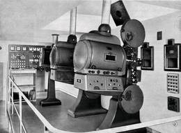 Zeig mir deinen Vorführraum - und ich werde dir sagen, wie du bist - so könnte man ein bekanntes Sprichwort abwandeln. Wir haben wieder das Bild eines vorbildlichen Bildwerferraumes ausgewählt, um zu zeigen, wie beispielhaft und praktisch ein Vorführraum eingerichtet sein kann. Hier handelt es sich um das Turm-Theater in Schwäbisch-Gmünd (Firma Huttenlocher & Söhne), das von der Firma Kinotechnik Jaensch mit einer Zeiss Ikon-Anlage und Ernemann-Projektoren ausgestattet worden ist