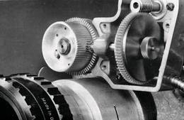 Schon seit langem hat sich im Projektorenbsu das gekapselte Getriebe mit automatischer Umlaufölung eingeführt. Die Zuführung des Films zur Schaltrolle besorgt die Vorwickelrolle, die Abführung nach dem Schalten die Nachwickelrolle.