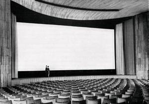 Mit der Einführung des CinemaScope-Verfahrens und der Breitwand-Projektion ist auch die breite Bildwand zum Mittelpunkt des Theaters geworden, und bestimmt damit weitgehend seine Gestaltung.