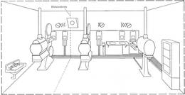 Alle Teile der Vorführeinrichtung, die für den Betrieb nicht direkt erforderlich sind oder durch Fernschaltung betätigt werden können, müssen in Nebenräumen untergebracht werden. Um die Möglichkeit zu haben, an den elektrischen Zuleitungen jederzeit bei Bedarf Änderungen vorzunehmen oder Störungen zu suchen, empfiehlt es sich, diese Leitungen in abgedeckten Kabelkanälen zu verlegen und sie eindeutig zu kennzeichnen.