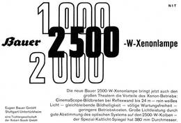 Hier in der Ausgabe 5/1963 ist eine Anzeige für BAUER Xenon Lampen. Besonders erfolgreich waren diese Anzeigen nicht, denn in Wiesbaden hatten wir 1966 im alten Thalia (BAUER B8) und im UFA im Park (Ernemann X) und im Walhalla Theater immer noch Kohlebogenlampen.