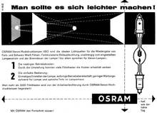 Allerdings muß bei der Verwendung der Reflektoren darauf geachtet werden, daß die eingebaute Jodlampe im wesentlichen in waagerechter Stellung brennt, da nur so der oben geschilderte Regenerierungsprozeß einwandfrei funktioniert.