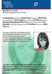 Die Hollies, die Bee Gees und Dave Dee waren die Stars der Sendung. Des Weiteren hämmerten Blue Cheer im Winter den „Summertime Blues". Mit „Eloise" wurde Heulboje Barry Ryan über Nacht zum Star in Deutschland und fand sich auf unzähligen BRAVO-Covern wieder. Das hat man dann davon ...