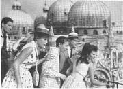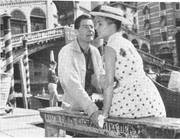 Tief beeindruckt ist Ilse, die mit einer Reisegesellschaft Italien besucht, von der Schönheit Venedigs - und vom Charme Robert Florians, der die Teilnehmer dieser Reise betreut. - Eine Szene aus dem CCC-Farbfilm „Italienreise - Liebe inbegriffen" mit Paul Hubschmid und Susanne Cramer. Weltvertrieb: UFA-Filmverleih.
