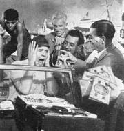 „Was wird mir jetzt wieder passieren", denkt Herr Fichte, der auf einer Italienfahrt Abenteuer am laufenden Band erlebt. - Walter Giller in einer Szene des CCC-Farbfilms im UFA-Filmverleih „Italienreise - Liebe inbegriffen". In weiteren Rollen: Paul Hubschmid, Susanne Cramer, Hannelore Schroth, Bum Krüger u. v. a.