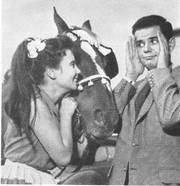 „Mit Scheuklappen durchs Leben gehen - kommt nicht in Frage!" scheint Walter Giller zu Corny Collins zu sagen. Beide spielen in dem CCC-Farbfilm „Italienreise - Liebe inbegriffen". Der Film mit Paul Hubschmid und Susanne Cramer in den Hauptrollen erzählt die. heiteren Erlebnisse einer Reisegesellschaft in Italien. Regie: Wolfgang Becker. Weltvertrieb: UFA-Filmverleih.