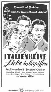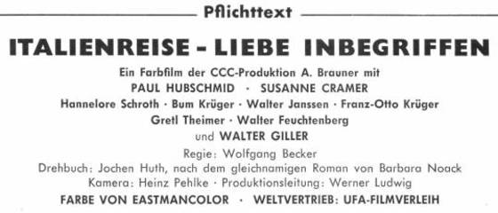 EIN CCC-FARBFILM IM UFA-FILMVERLEIH nach Motiven des Romans "Italienreise - Liebe inbegriffen" von Barbara Noack