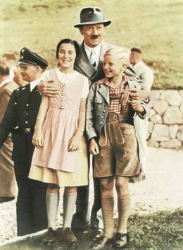 Der Mann, der mit dem Röhm-Putsch von 1934 den Befehl zur Beseitigung von Dutzenden ehemaliger politischer Freunde gab, der seit 1936 systematisch den Krieg vorbereitete, der den Tod von Millionen Juden befahl und den Zweiten Weltkrieg begann, durch dessen Verschulden mehr als 50 Millionen Menschen den Tod fanden, der zahlreiche innenpolitische Gegner in KZs schickte oder ermorden ließ, posiert als jovialer Landesvater mit zwei Kindern vor der Kamera.