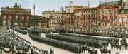 Das »Deutsche Turn- und Sportfest« von 1938 in Breslau (Bild 2) wird mit parteioffiziellen Massenaufmärschen und Umzügen ebenso pompös begangen wie die Siegesparade heimkehrender Truppen nach der Niederlage Frankreichs im Juli 1940 (Bild 3).