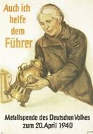 Diese kleine Auswahl von Plakaten hat vor allem zwei Komplexe zum Thema, die für die Zeit zwischen 1933 und 1945 typisch sind: Immer wieder wurde das Volk zu Spenden oder Sammlungen aufgefordert, sei es zu einem Beitrag zum Winterhilfswerk (Bild 10), der oft direkt vom Lohn abgezogen wurde, oder einer Metallspende (Bild 12).