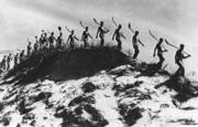 Mit einem Minimum an Kosten erzielte das Regime ein Maximum an propagandistischer Wirkung. Sichtbares Zeichen des RAD war der Spaten, mit dem auch beim Hissen der Flagge (Bild 70) und auf Wache (Bild 72) salutiert wurde. Zu allen Arbeiten wurden die Arbeitsdienstleistenden herangezogen, auch zur Aufforstung einer Wanderdüne bei Ossecken (Bild 71).