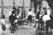 An den Orten, an denen keine modernen Turngeräte zur Verfügung standen, improvisierte man die Mutproben (Bild 58).