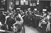 Für den »Gemeinschaftsempfang« war ebenfalls gesorgt: Während einer offiziellen Führer-Rede wagte niemand, den »Deutschen Gruß« zu verweigern - hier in den Warteräumen einer Münchner Behörde (Bild 103).