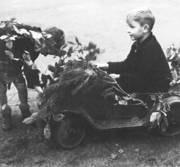 Für den normalen Bürger war der Alltag jedoch viel stärker im Sinne der nationalsozialistischen Ideologie ausgerichtet: Die Kleinen durften sich während öffentlicher Demonstrationen der Wehrmacht im Tarnen von Fahrzeugen üben (Bild 102),