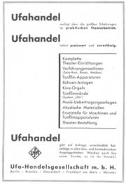 Gleich mit dem Aufkommen des Tonfilms wurde der Ufa-Musikverlag gegründet; die Tantiemen fließen noch immer, heute streicht sie Bertelsmann ein. Doch selbst kleine Geschäfte wie den Schmalfilmvertrieb nahm die Ufa mit. Zudem verstand man sich schon damals im Merchandising: vom Quartettspiel bis zum Ufa-Kalender, von Filmromanen bis zu Starpostkarten.