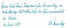Dieses Exemplar trägt die Nummer 155 in dem von ihm selbst handsignierten Gruß an den ehemaligen Mitarbeiter Totzarew oder Tokarew. Hans Vogt erhielt von der UNI Bonn die Ehrendoktorwürde für seine Arbeit und sein Lebens-Werk, denn der weltbekannte Licht-Ton-Film war wirklich eine deutsche Entwicklung - ähnlich wie das einmalige Magnetophon aus den Labors der AEG in Berlin und auch der deutsche Hubschrauber und die deutsche Rakete.
