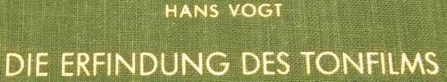 Das Buch von HANS VOGT • >Die "Erfindung" des Tonfilms<