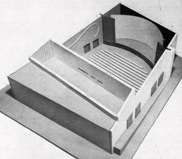 Für die Tonabtastung wird ein Magnettongerät mit kombiniertem Abtastkopf für die 6 Magnetspuren des Todd-AO-Films und dazwischen (tiefer) liegenden Abtastköpfen für Vierkanal-Magnetton sowie ein Lichttongerät verwendet. - Das untenstehende Bild zeigt das Modell des inzwischen fertig gestellten „Haus Savoy" in Hamburg.