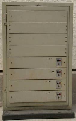 Im Schrank 1 sind weitere 3 Endverstärker untergebracht. Eines der wesentlichen Merkmale dieser Art von Endstufen war die Zuverlässigkeit bei reiner thermischer Belüftung. Die heutige absolute Super- Hifi-Qualität spielte damals noch gar keine Rolle, denn das damalige Programm-Material - selbst auf dem 70mm Magnetton-Streifen - gab das ja noch gar nicht her.