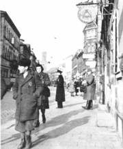 Er winkte mich herrisch an der Schlange vorbei zu einem leeren Schalter, hinter dem eine Beamtin döste. Mich im Vorbeigehen umdrehend, sah ich, wer die Schlange bildete, in der ich gestanden hatte: lauter blasse, verhärmt aussehende Menschen mit einem gelben Judenstern auf dem Revers, ein häßlicher, zur antisemitischen Propaganda passender Anblick.